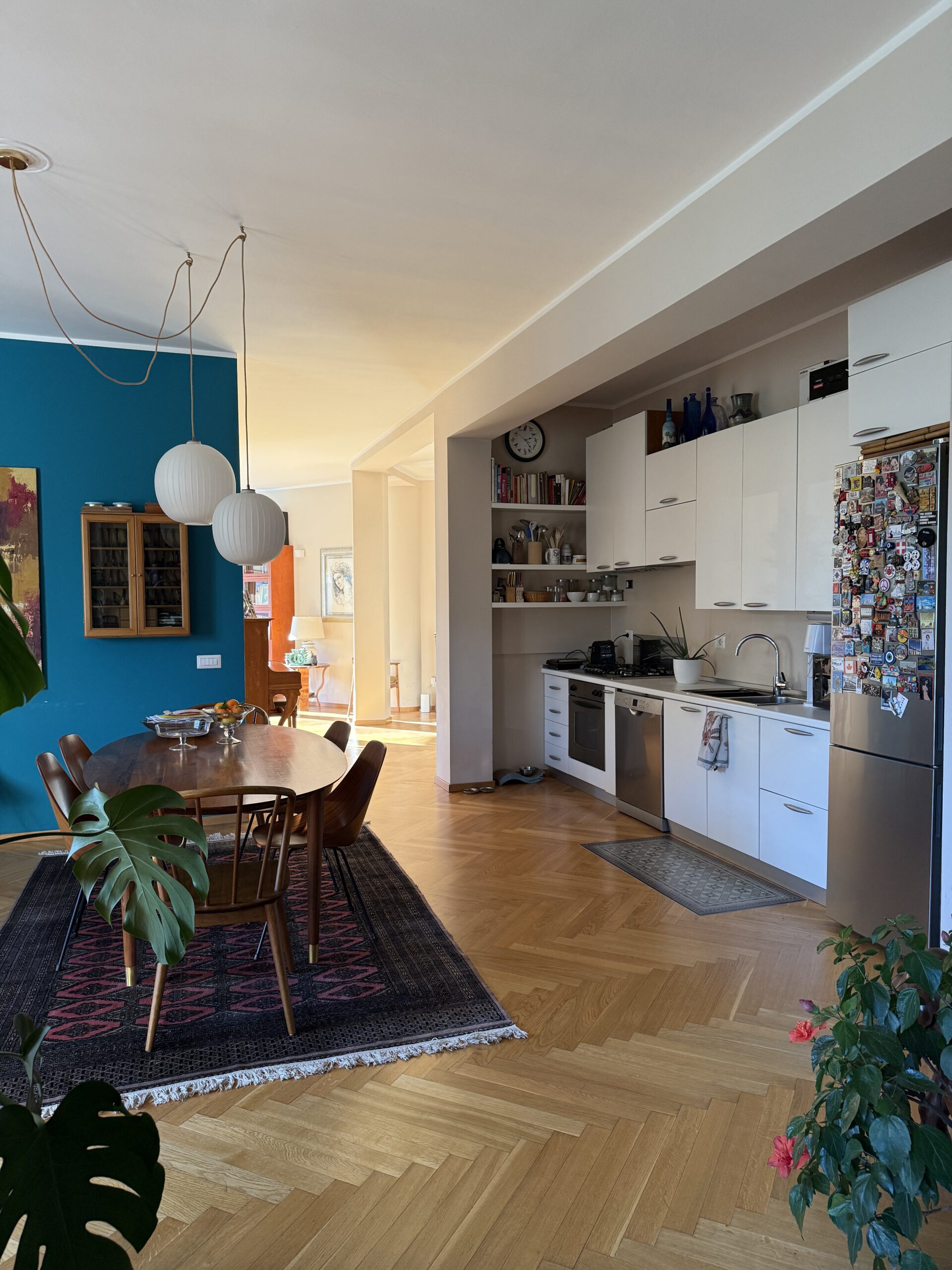 Appartamento molto affascinante con una immediata sensazione di benessere, tutta la casa è stata pensata per essere vissuta in tutta la sua interezza con vari angoli che creano atmosfera. Introvabile la vetrata del salone che fa effetto barca, meraviglioso il terrazzino e bellissima circolarità data dal progetto.