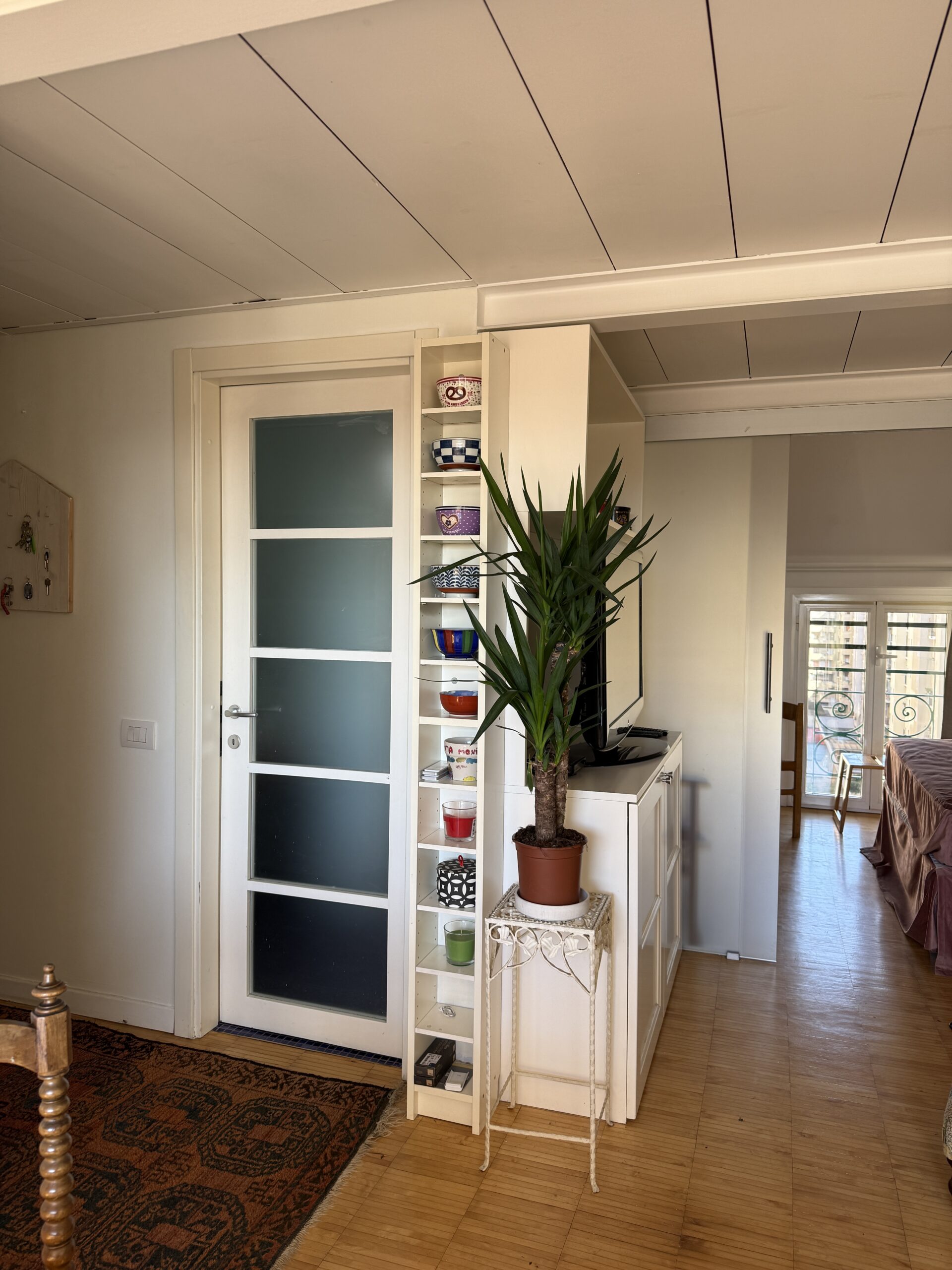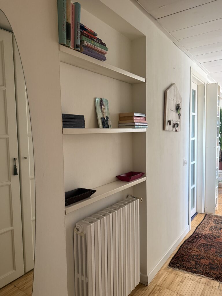 L’appartamento ha una doppia esposizione Nord-Sud ed è particolarmente luminoso. Il balcone è ampio e c’è anche un rispostiglio.