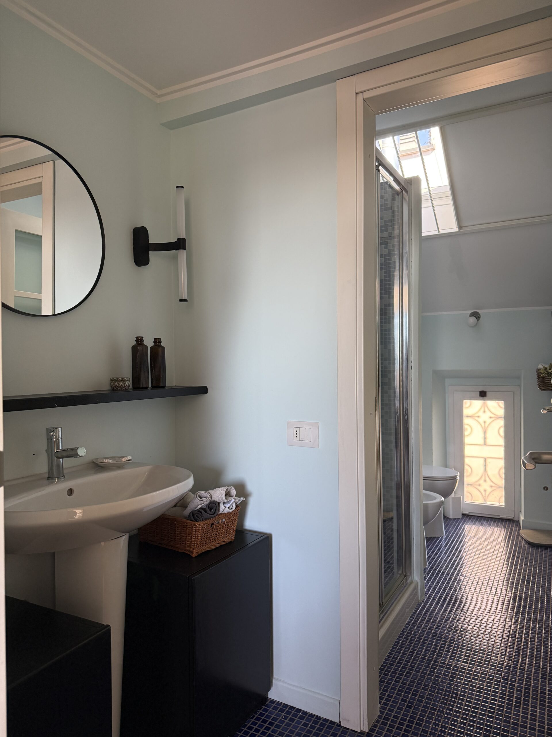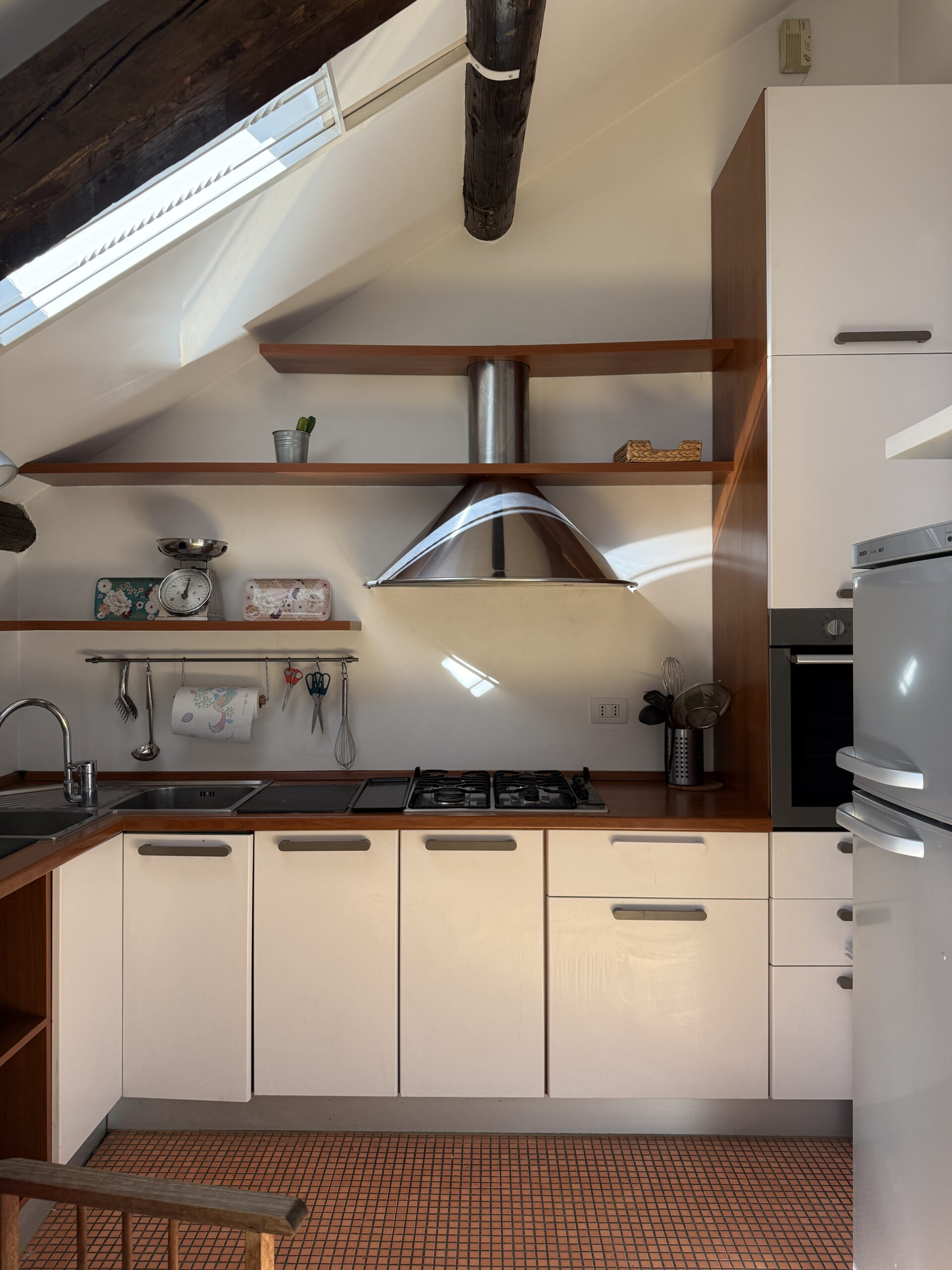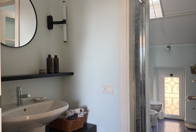 L’ascensore arriva al V piano e per raggiungere l’appartamento occorre fare una rampa di scale.