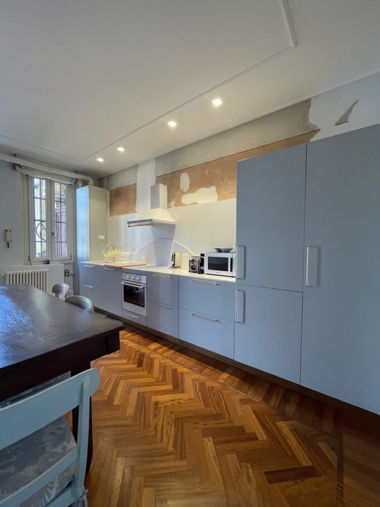 Proponiamo in locazione transitoria (1 anno) un trilocale di 75 mq ristrutturato con finiture di pregio, posto al terzo piano di uno stabile vecchia Milano parzialmente risistemato, dotato di ascensore e servizio di portineria tutto il giorno.