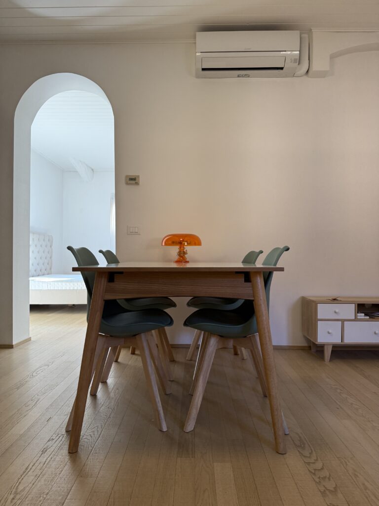 L’appartamento è stato completamente ristrutturato ed è arredato con mobilio nuovo e finiture di pregio, aria condizionata e riscaldamento autonomo, doppi vetri, porta blindata.