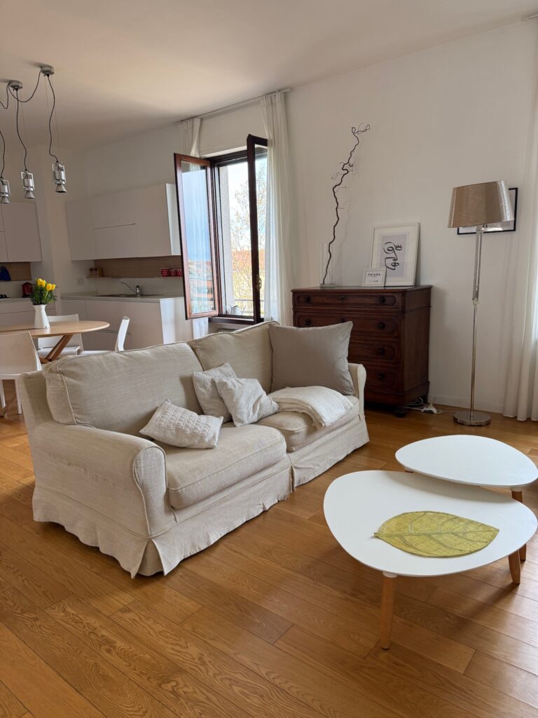 L’appartamento è luminosissimo e completamente arredato con arredi e complementi di pregio.