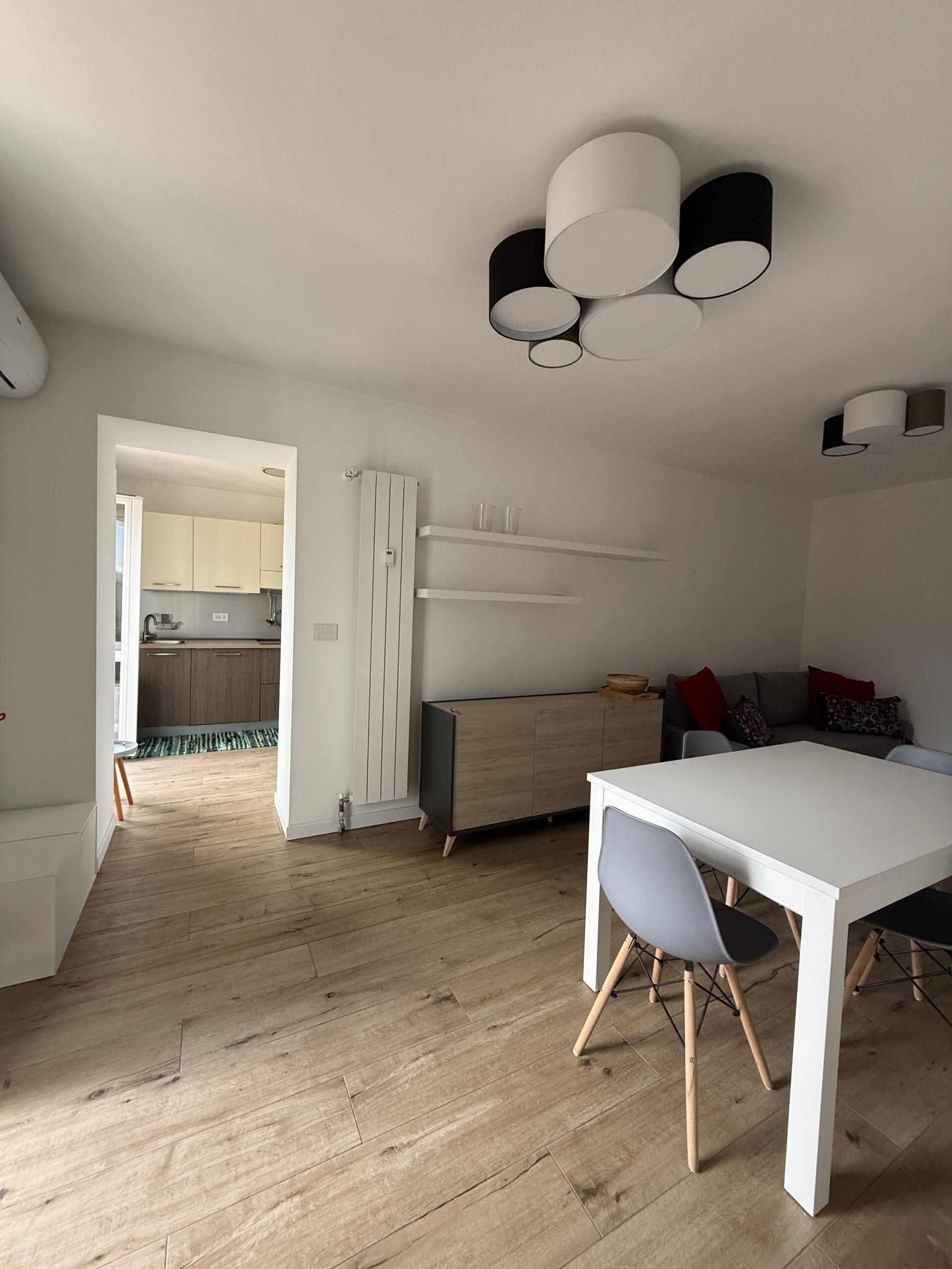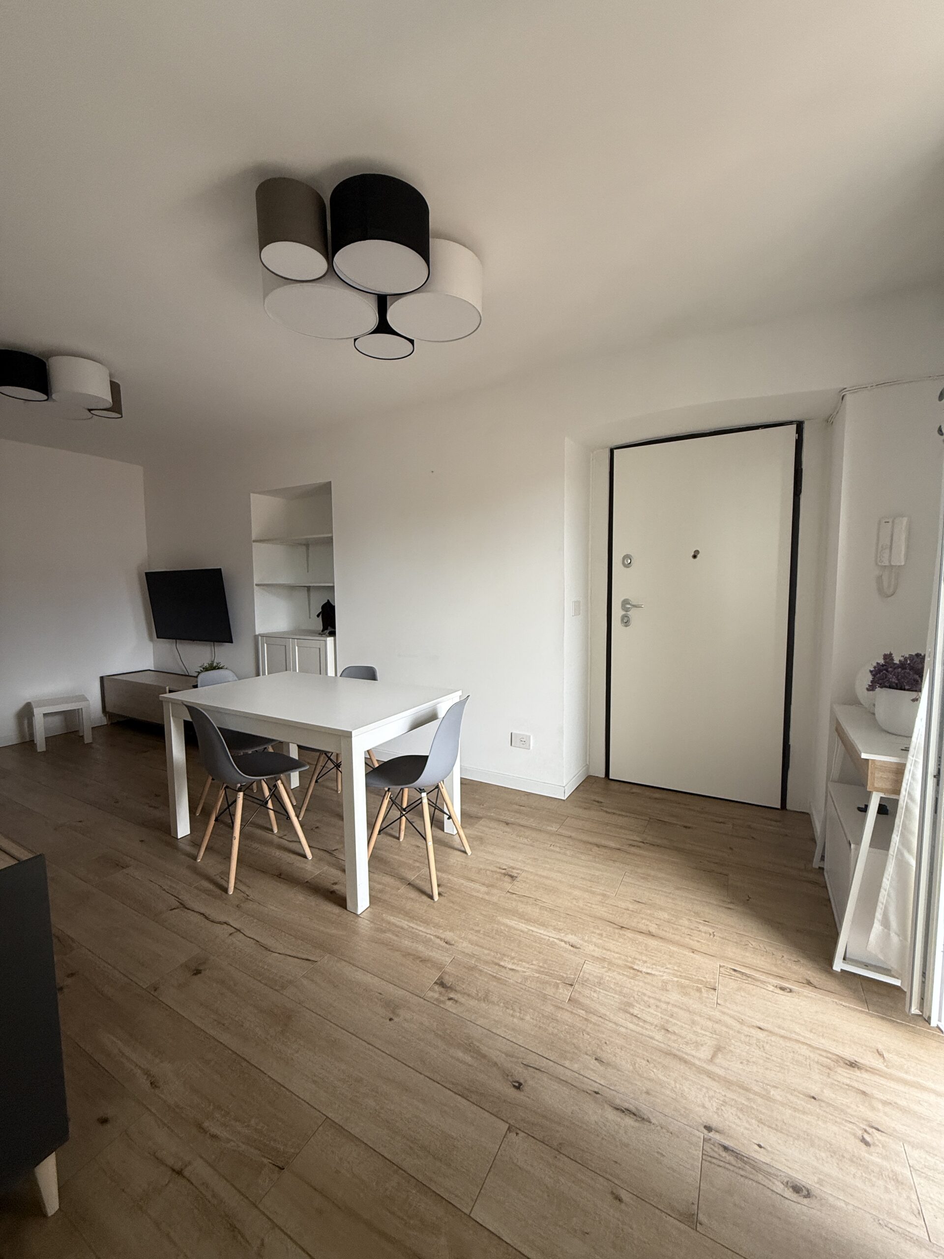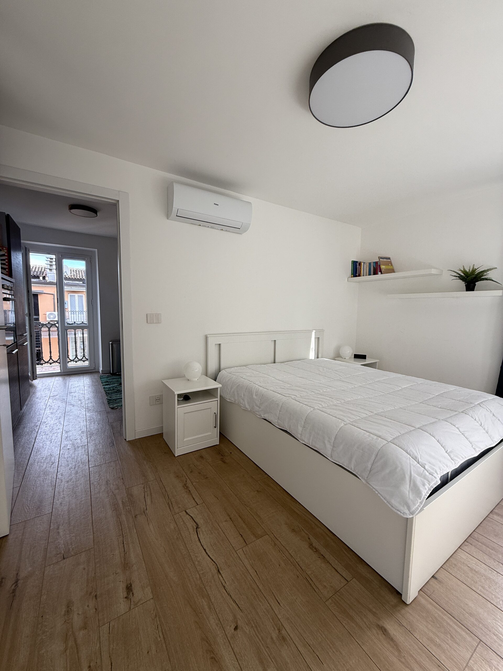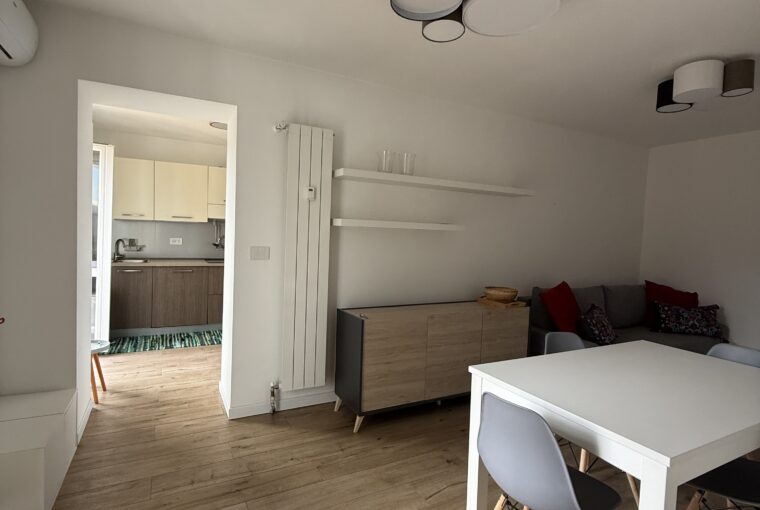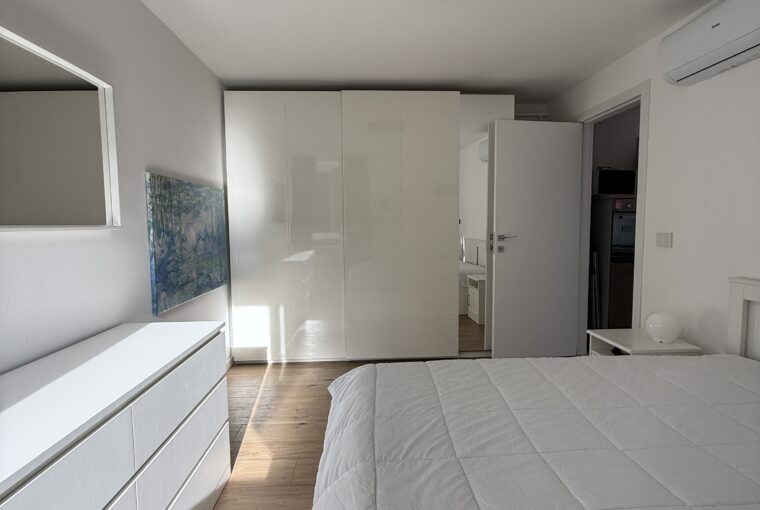 Il bilocale è stato completamente ristrutturato : ingresso su soggiorno living con zona pranzo e spazio divano/tv, disimpegno, cucina a vista, ampia camera da letto matrimoniale, bagno finestrato, zona lavanderia. No cantina.
