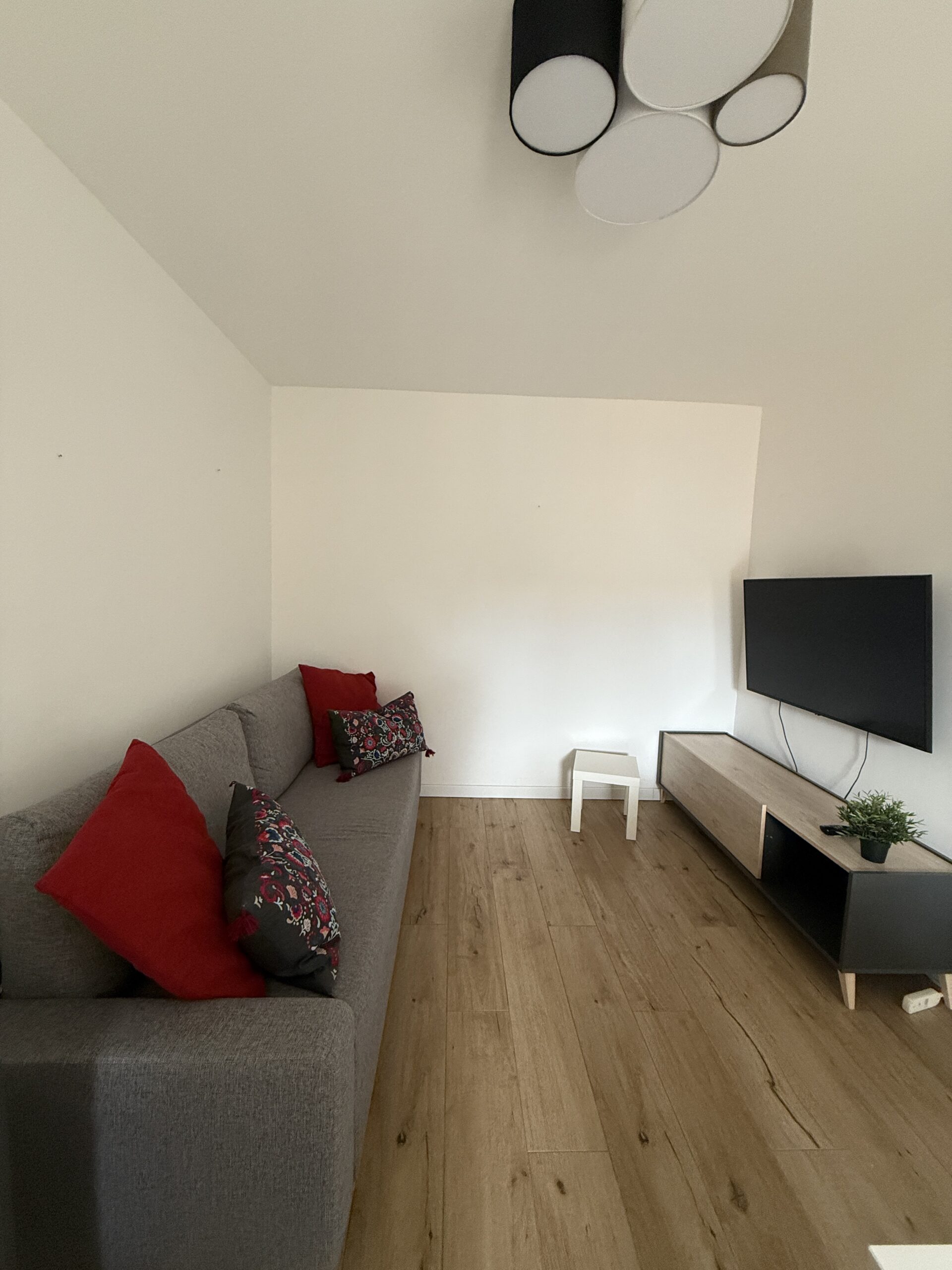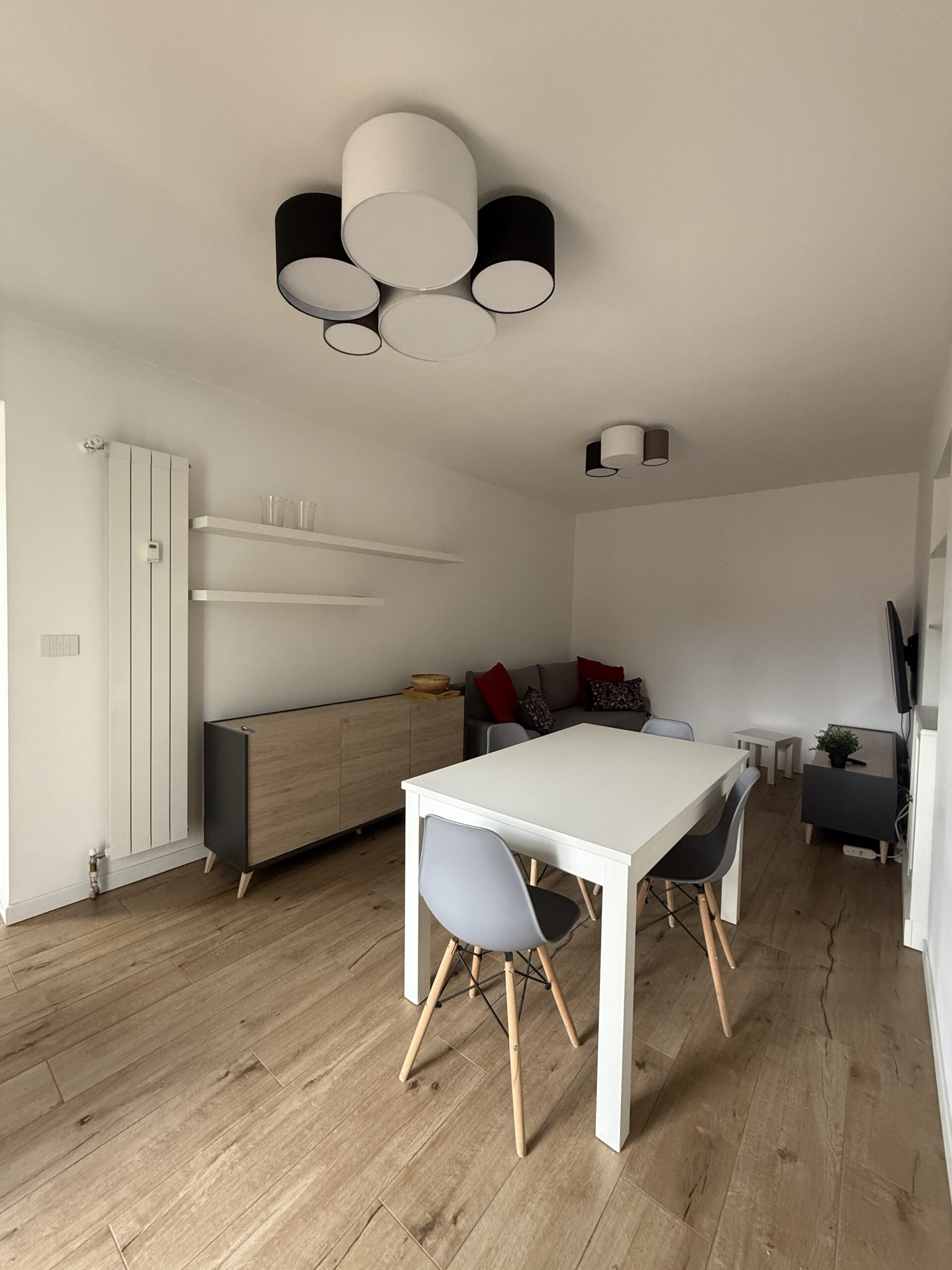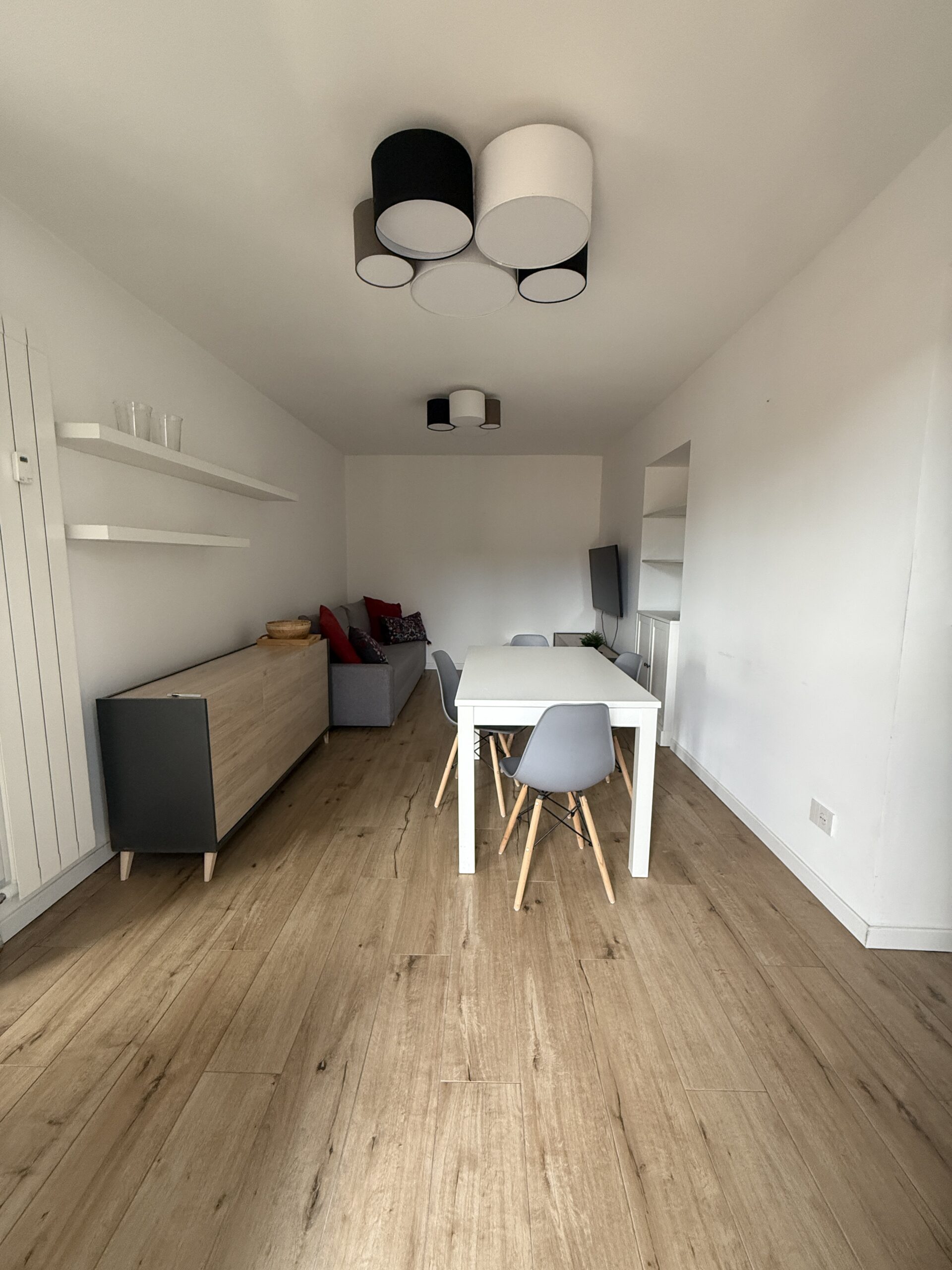 Il bilocale è stato completamente ristrutturato : ingresso su soggiorno living con zona pranzo e spazio divano/tv, disimpegno, cucina a vista, ampia camera da letto matrimoniale, bagno finestrato, zona lavanderia. No cantina.