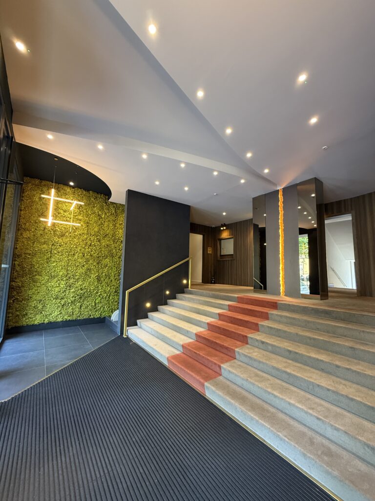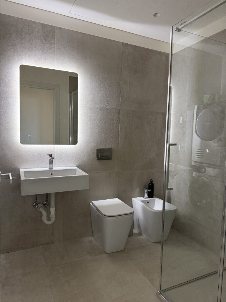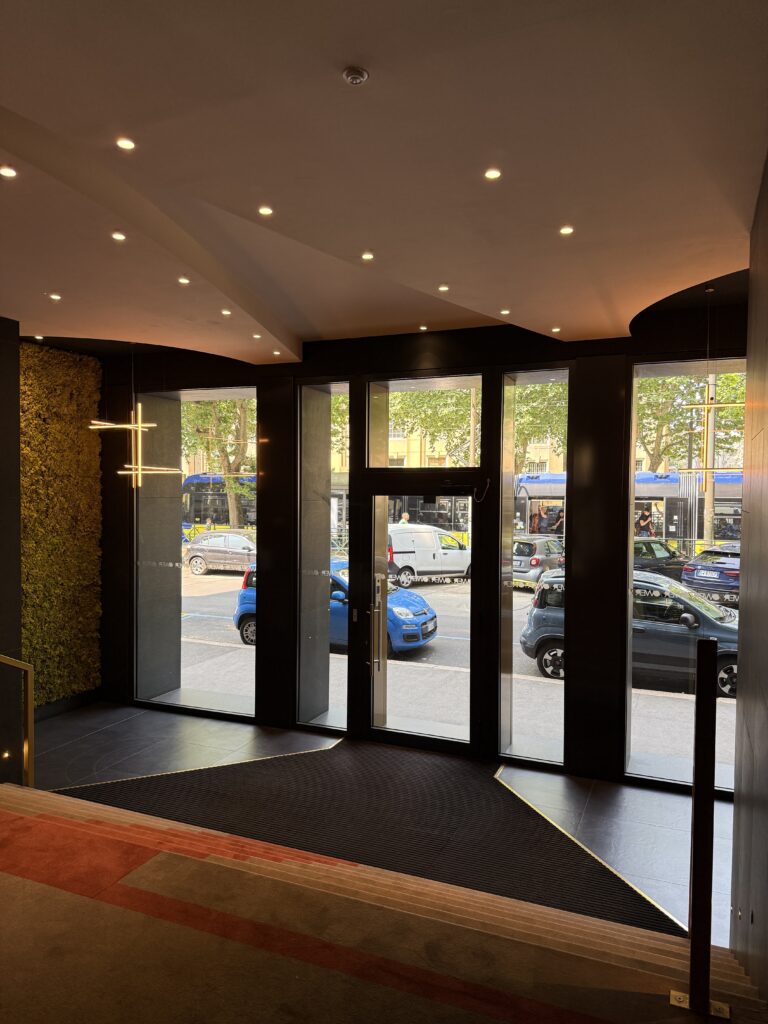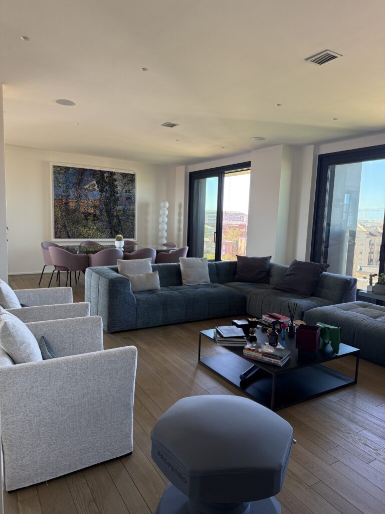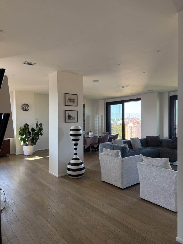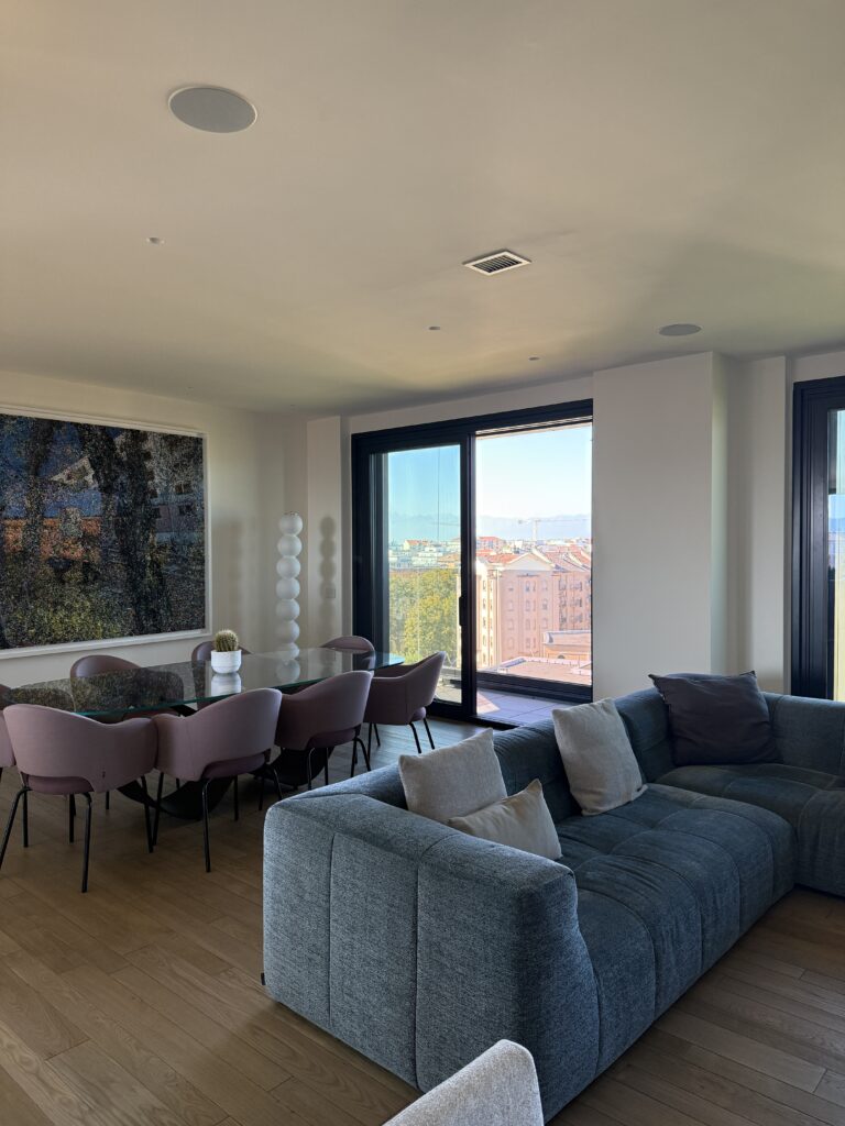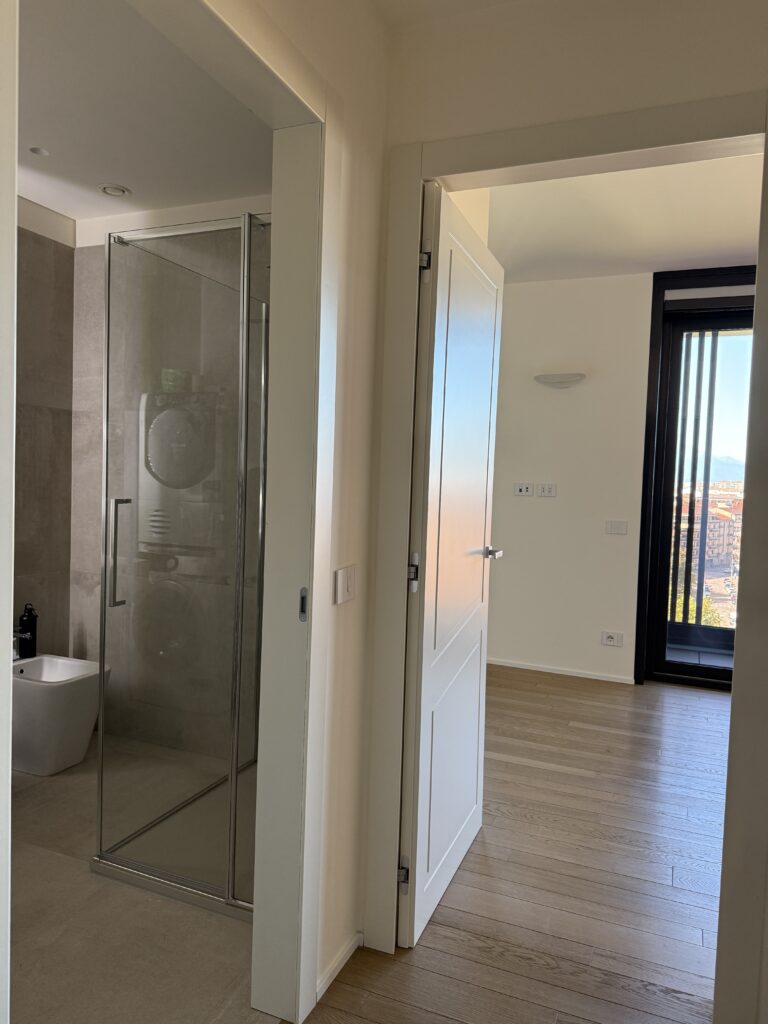 Vetri insonorizzati, aria condizionata, portineria, doppi ascensori, riscaldamento a pavimento con teleriscaldamento e possibilità di regolare la temperatura interna.