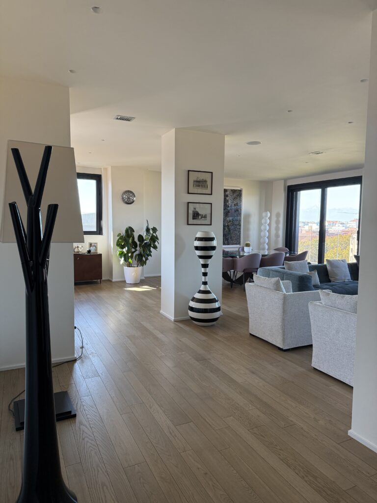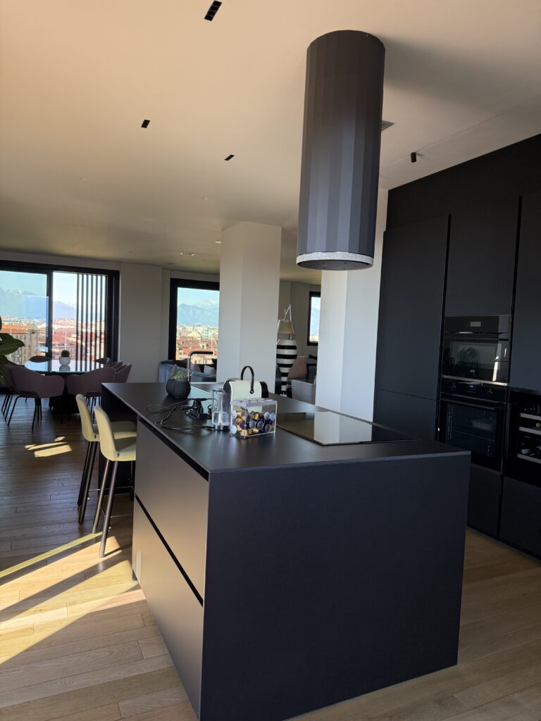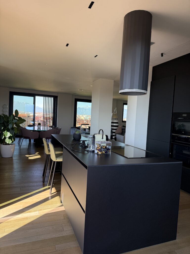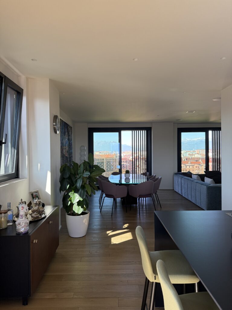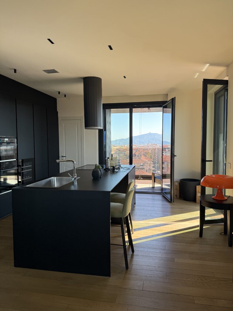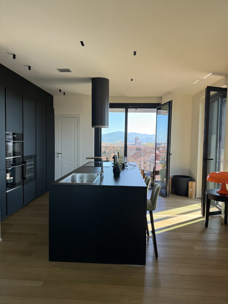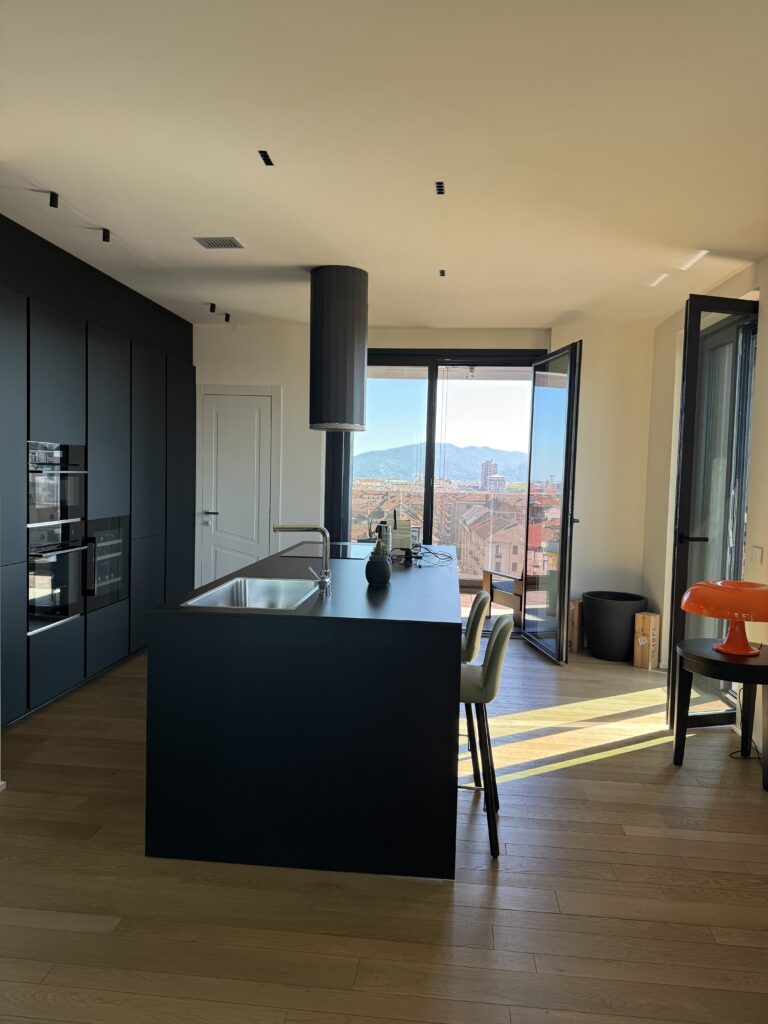 Splendido appartamento completamente nuovo. All’interno della torre 7Ower, nono piano, Vista spettacolare sulla città e montagne. Tre arie con grandi vetrate. Mq 192, ingresso, salone doppio, grande cucina, due camere da letto, cabina armadi, ripostigli, tre bagni, cantina e n. 2 box auto a parte.