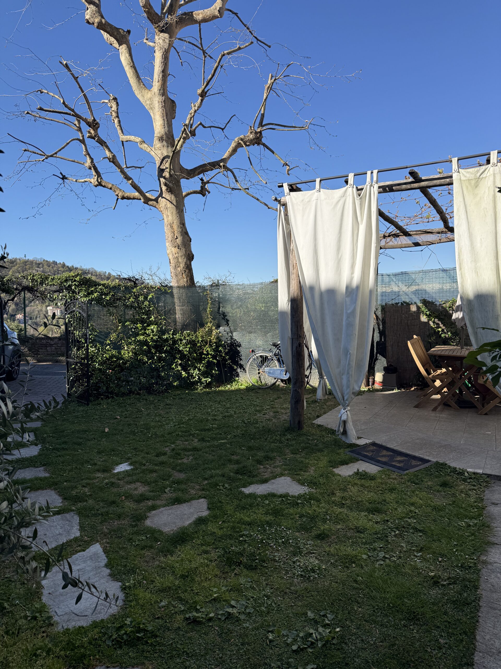Splendida opportinità, appartamento indipendente su due livelli oltre sottotetto, giardino privato, 2 posti auto. Vista incredibile sulle montagne e Superga. Sole pieno tutto il giorno. La posizione è a 500 mt da Villa Genero (si possono portare i bambini a piedi). Contesto non isolato di vecchia vigna ristrutturata in diverse unità abitative. Doppi ingressi su ampia zona giorno al piano terra con salone, cucina ad isola, bagno di servizio, piccola lavanderia, ripostiglio con caldaia a condensazione. Tutta la zona giorno affaccia sul giardino privato di circa 60 mq. Al primo piano zona notte con due camere da letto ognuna con bagno privato e cabina armadi, spazio salottino. Al piano sottotetto non abitabile un grande open space adibito a sala giochi. La casa è stata completamente ristrutturata nel 2021 e ha le caratteristiche ideali per una famiglia o una coppia. Il giardino ha una dimensione gestibile, riscaldamento e raffrescamento autonmi con pompa di calore, doppi vetri con infissi ultramoderni. Pavimento in legno in tutta la casa. Ristrutturazione moderna e funzionale.
