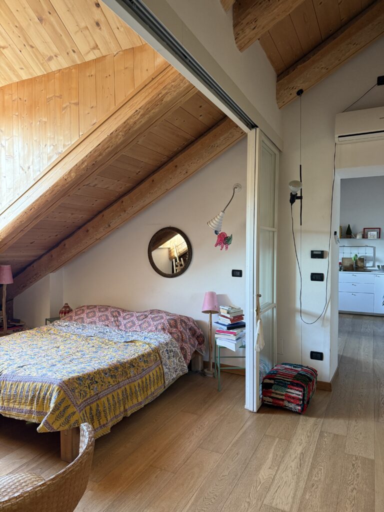 Appartamento mansardato di grande fascino. Affacciato sulla splendida piazza della Repubblica, esposto ad ovest con una luce incredibile. Ristrutturato, ingresso su soggiorno, due grandi camere da letto e bagno. Sottotetto parzialmente recuperato, particolare parete vetrata che rende la camera centrale una stanza jolly volendo salotto. Armadi su misura. Aria condizionata. L’altezza dei soffitti e le finestre, rendono questa mansarda estremamente vivibile e ben organizzata.