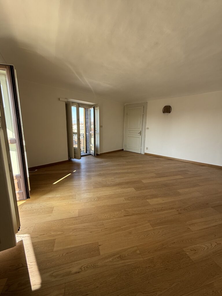San Salvario, davanti alla fermata della metro Marconi, bellissima casa d’epoca in stile francese, quinto ed ultimo piano, ascensore, vista strepitosa verso le montagne e via Nizza (esposizione sud- ovest), appartamento molto particolare, di ampia metratura. La proprietà, in ottimo stato interno e con stupendi dettagli d’epoca: ingresso con balcone sul cortile interno, ampio e luminoso salone panoramico, cucina abitabile, due camere, doppi servizi (di cui uno a servizio della camera). Ripostigli, armadi a muro, pavimenti in legno. Stabile signorile ben abitato, riscaldamento centralizzato.