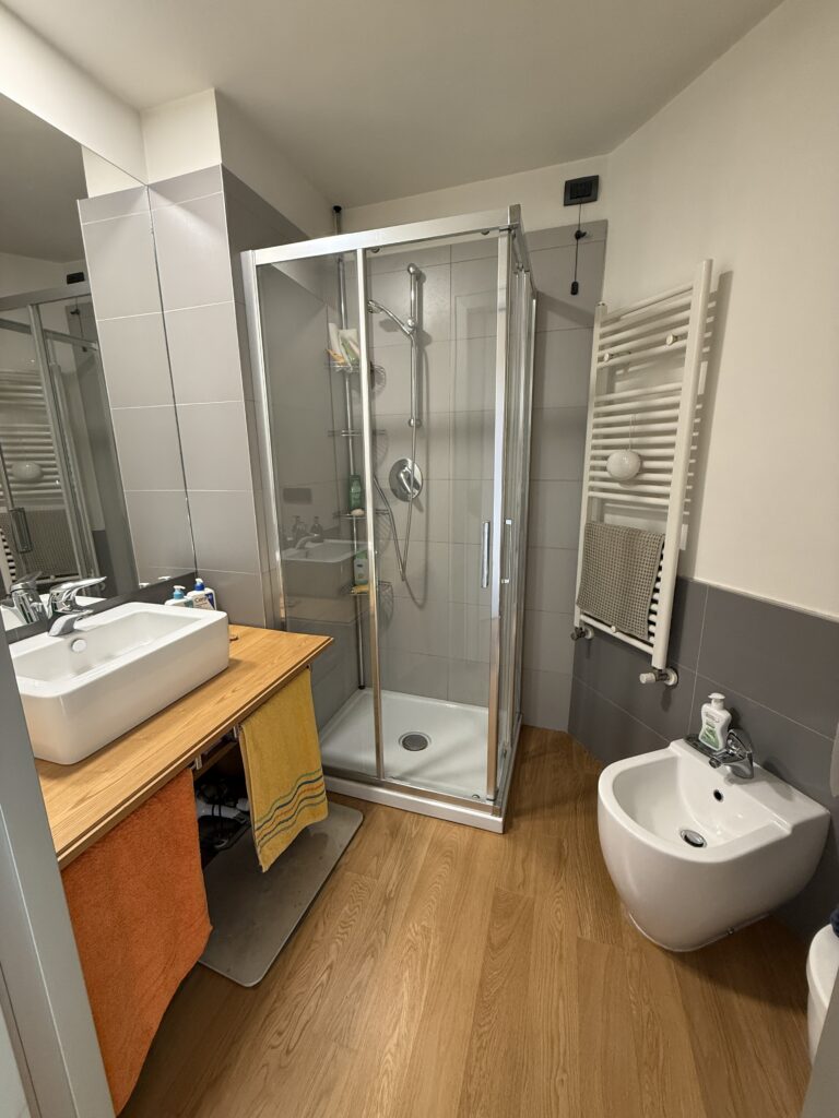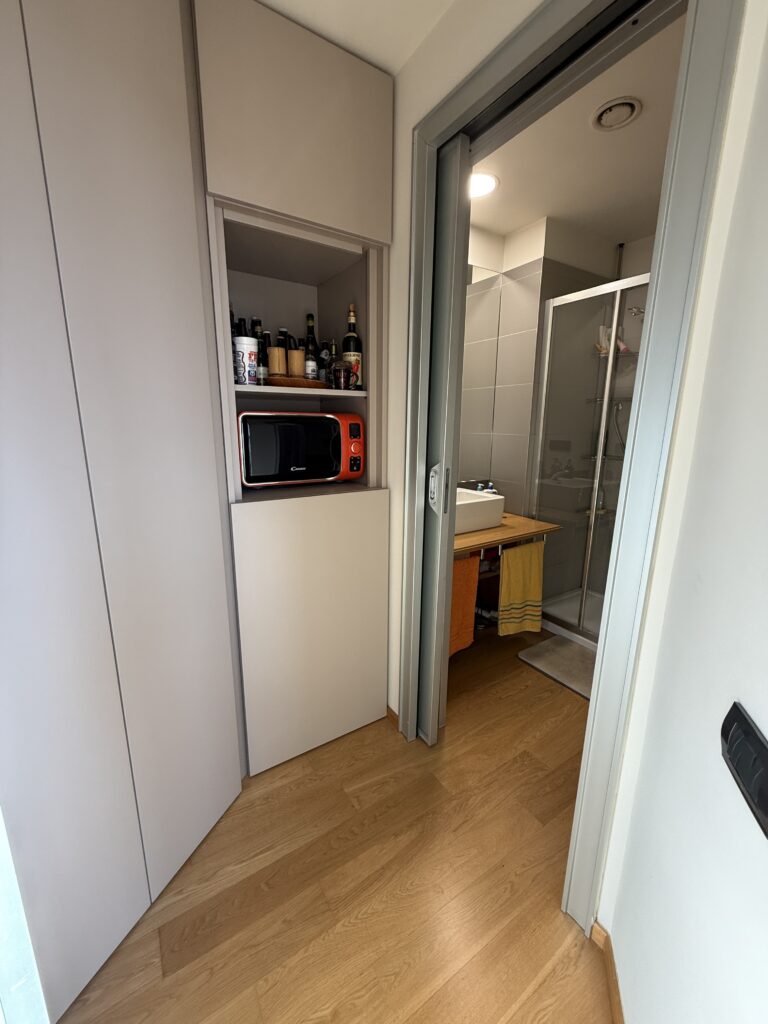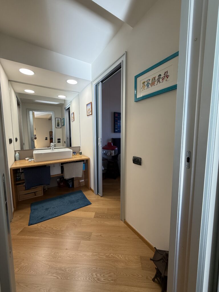 L’appartamento, in perfetto stato interno presenta una semplice e funzionale pianta e disposizione degli spazi: ingresso con disimpegno/corridoio, ampia zona giorno divisa tra zona pranzo e zona relax/tv, cucina semi abitabile, piccolo bagno di servizio con doccia e con armadi a muro per organizzare al meglio lo spazio, nel disimpegno della zona notte, ampia camera da letto matrimoniale, secondo bagno con vasca.