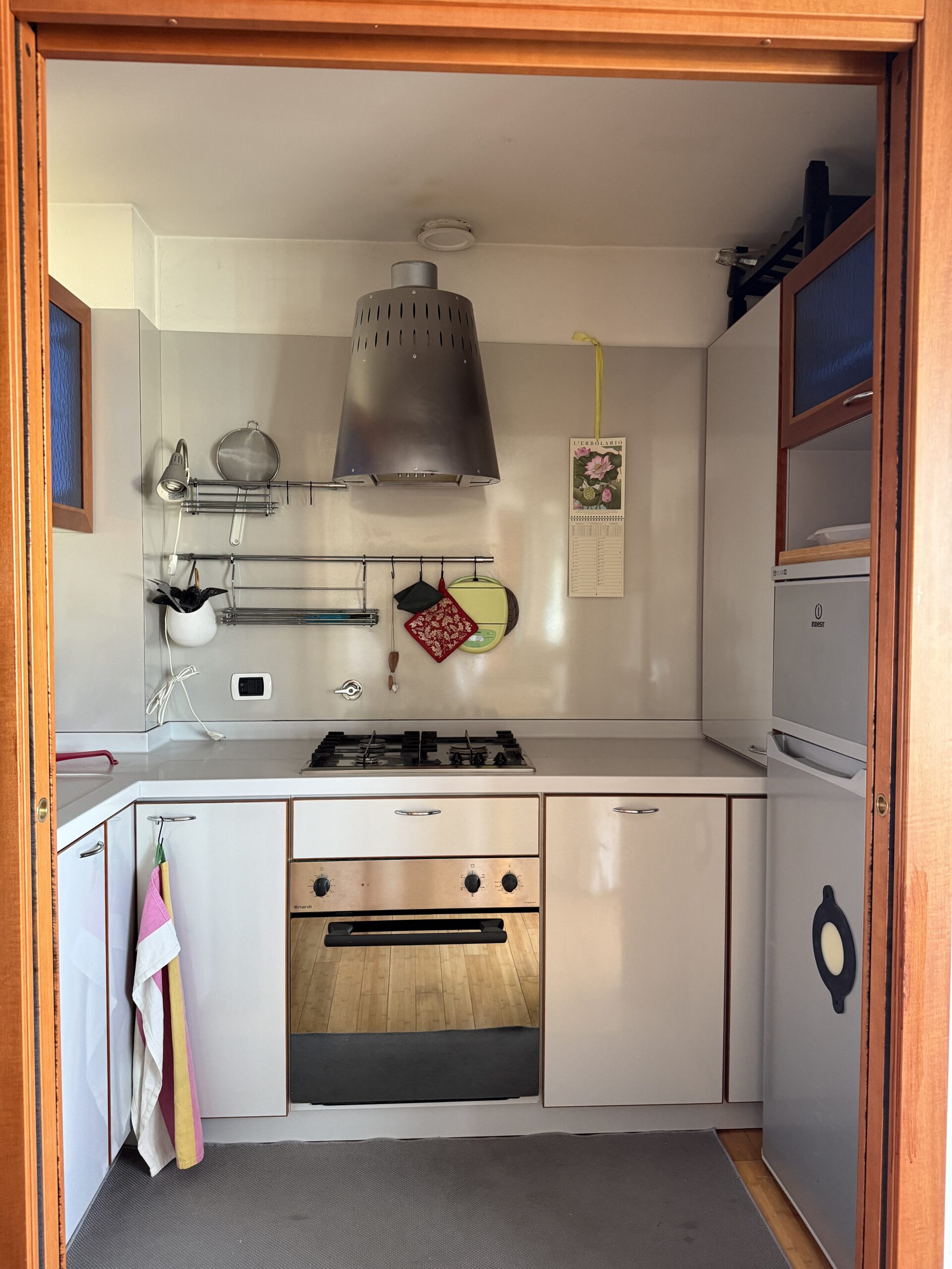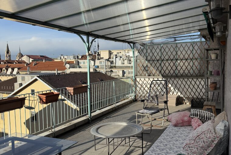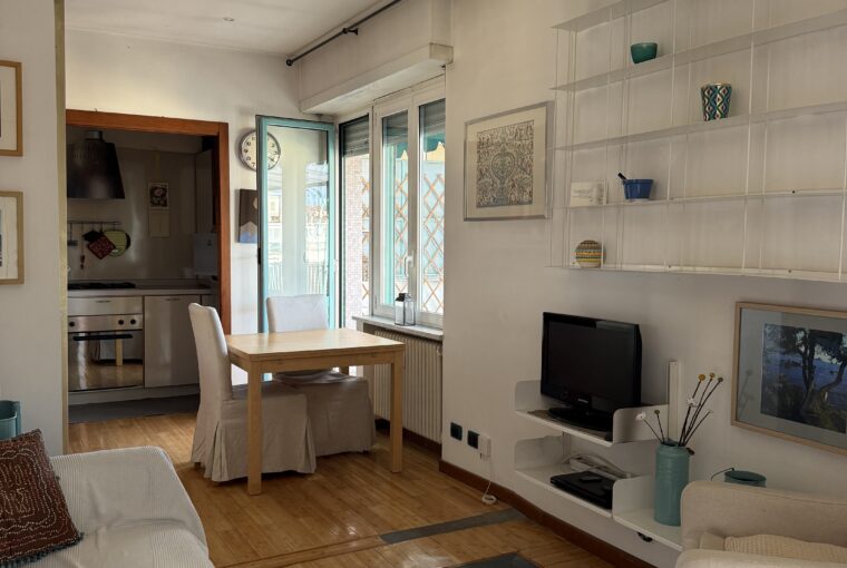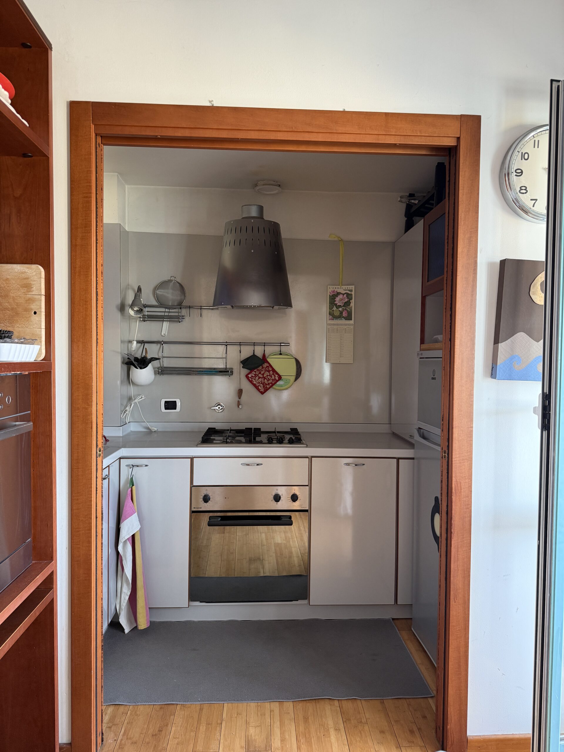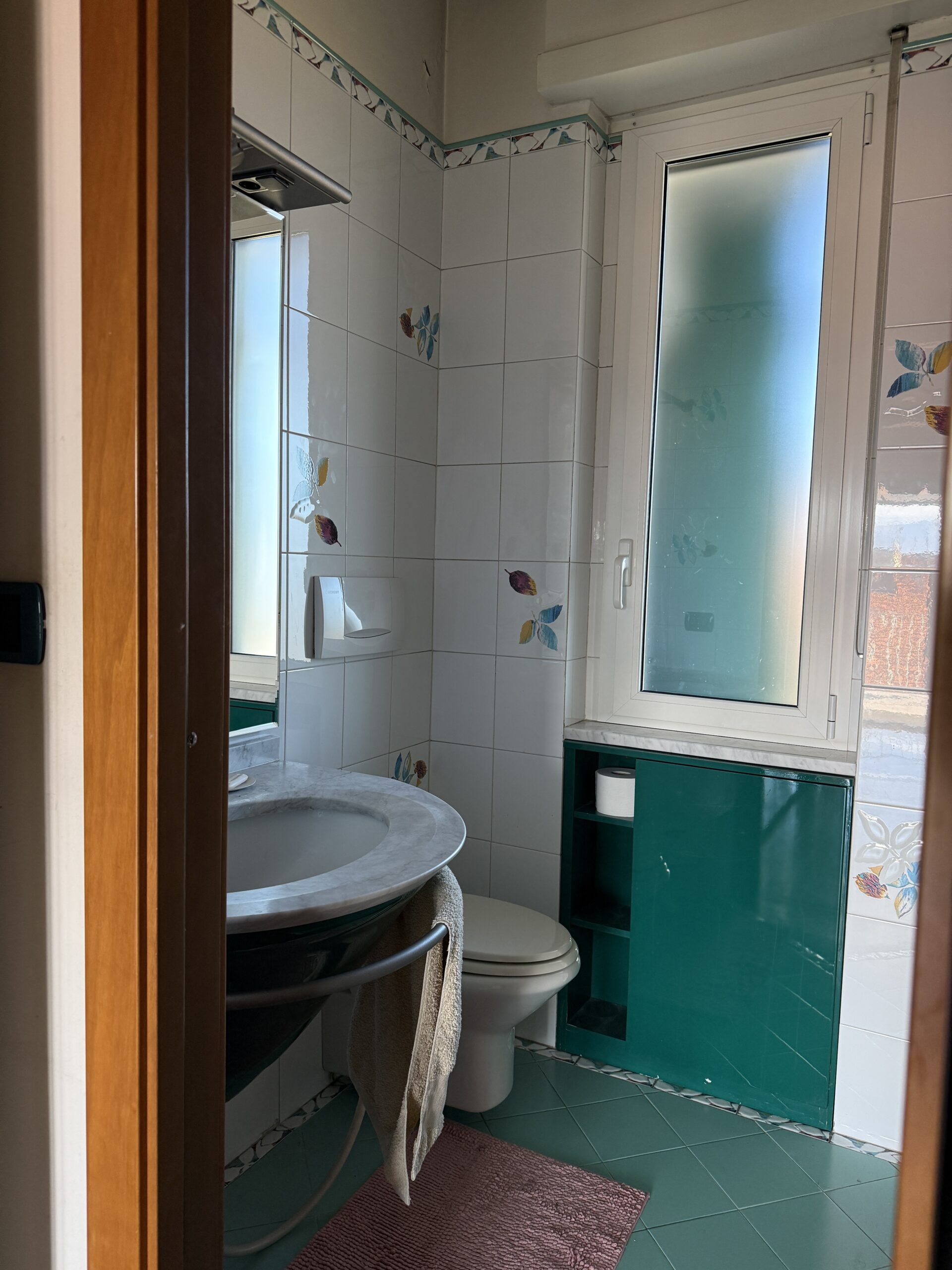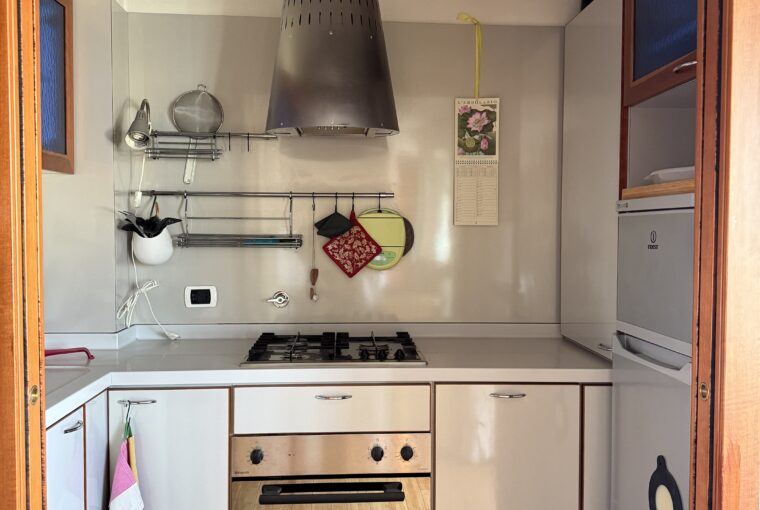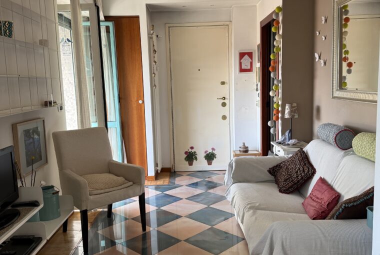Opportunità unica per questo appartamento attico con un terrazzo di 27 mq. Ultimo piano con ascensore, ingresso su ampia zona giorno divisa in zona divano, zona pranzo e cucinino a vista volendo chiudibile. Camera da letto, bagno sdoppiato alla francese, ampio balcone lato cortile attrezzato a lavanderia e ripostiglio. Doppia aria parallela esposizione est-ovest soleggiatissimo con vista montagne e collina. Tutta la zona giorno affaccia sul grande terrazzo protetto da tettoia (nuova) che ci permette un arredo da utilizzare tutto l’anno. Tramonti stupendi dal terrazzo esposto ad ovest. L’appartamento ha l’aria condizionata, riscaldamento centralizzato, cantina, porta blindata e viene venduto volendo dotato di arredi come da fotografie.